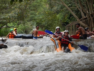 And that brings us back to that first conversation with Samart. Our first mission as volunteers was to help a large group of British and Dutch guests safely navigate their way down the river in inflatable tubes. Karen was assigned to the rescue boat and Adam was assigned to his own tube. Luckily no rescue missions were needed and we continued on to the bungalows, where we stayed for the next eight days.